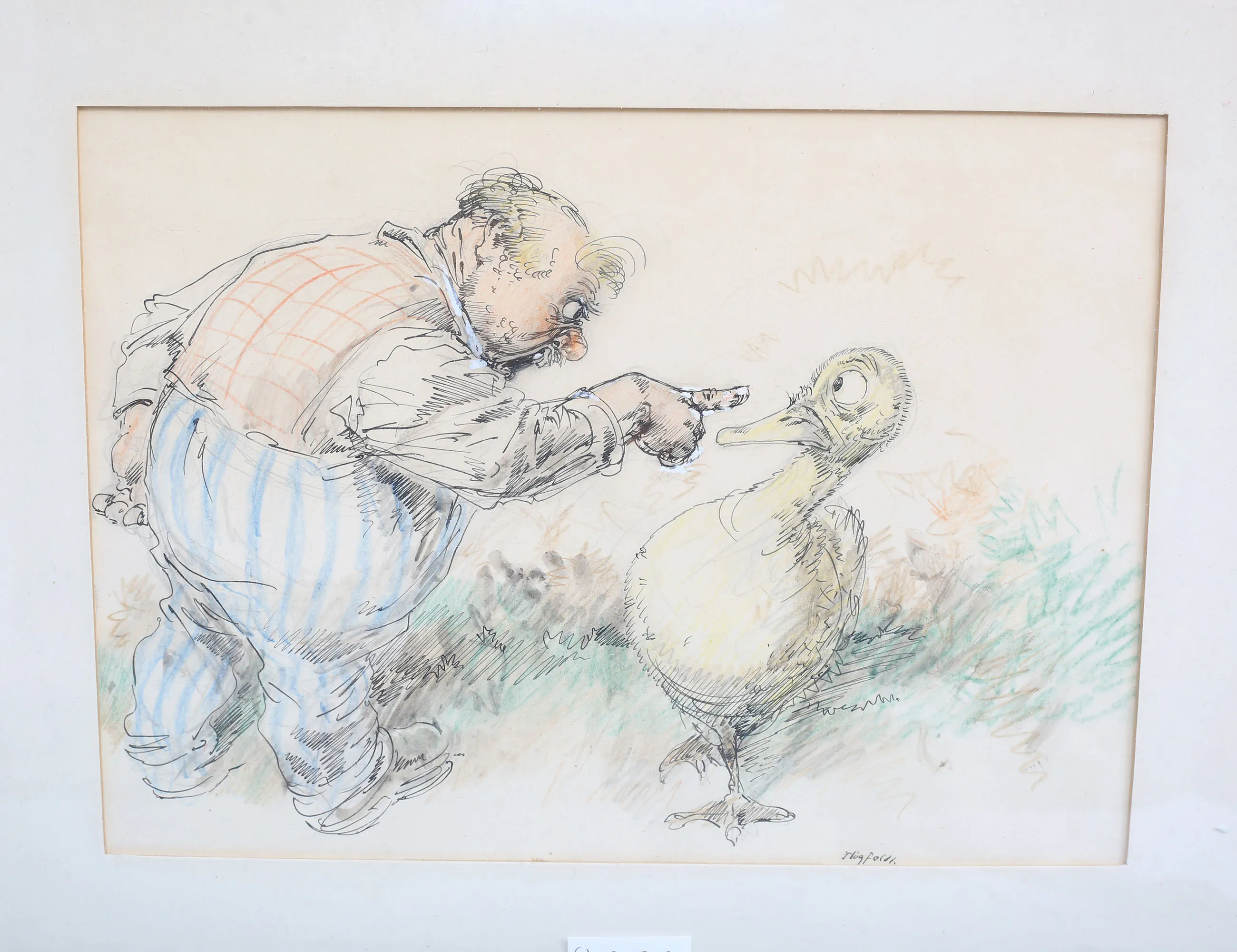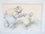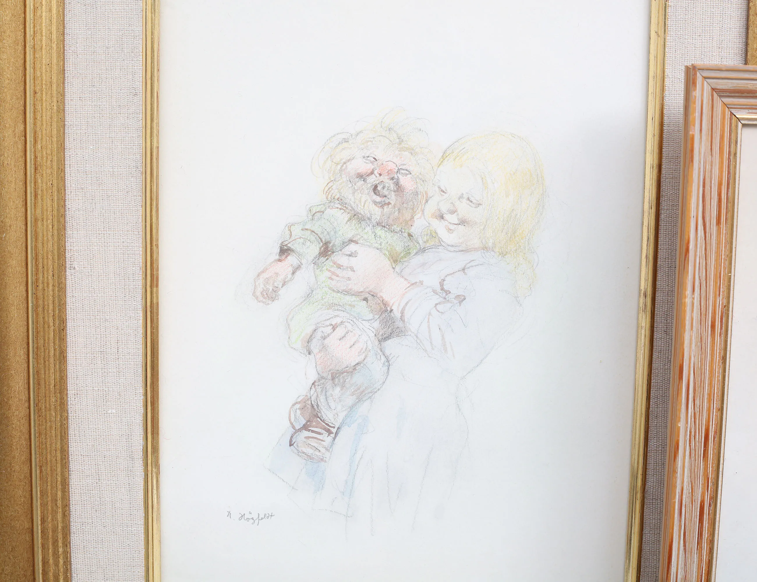 blandteknik 2 stycken, flicka och troll, 31x23 rammått 53x45, trollgubbe och anka, 23x31, rammått 39x46