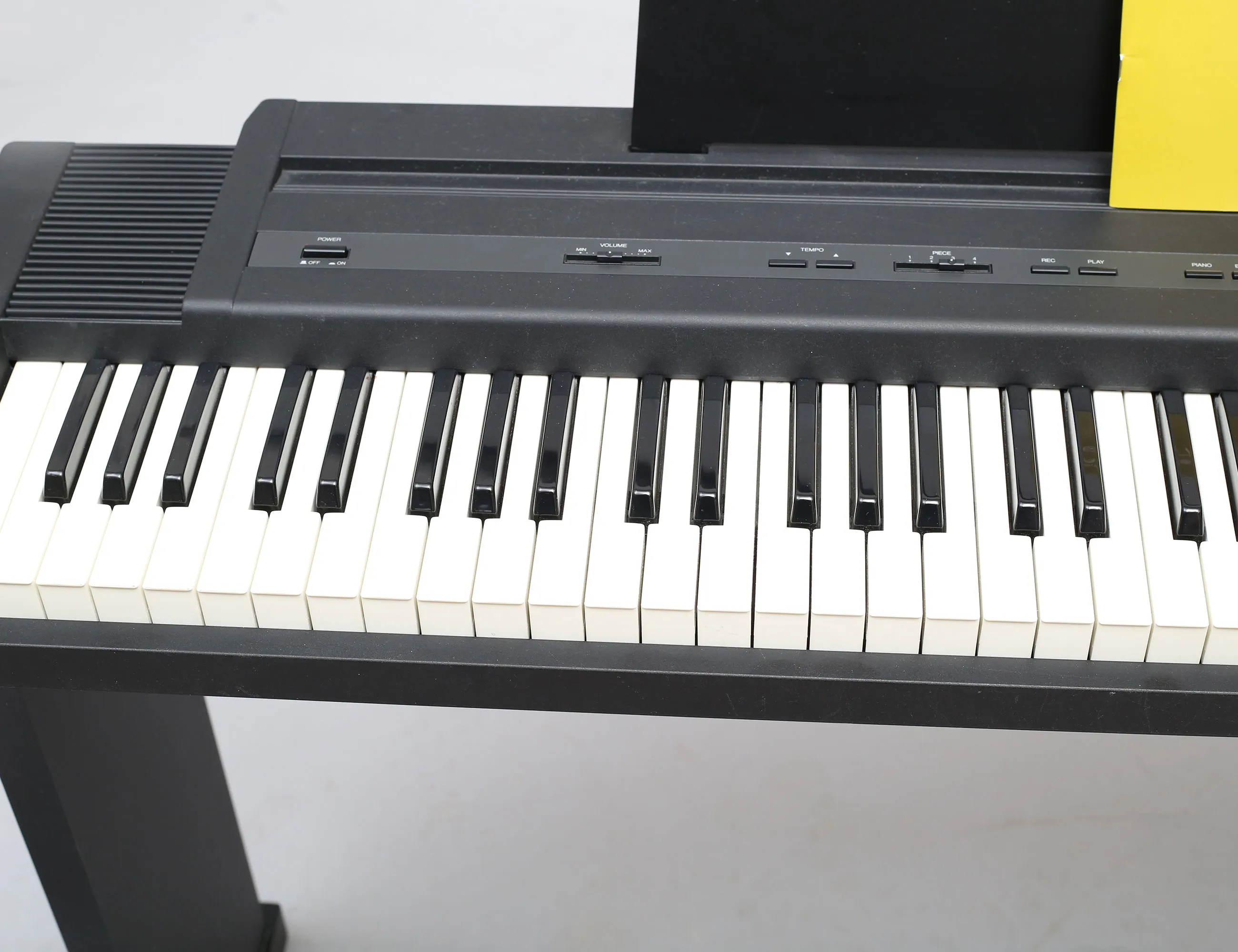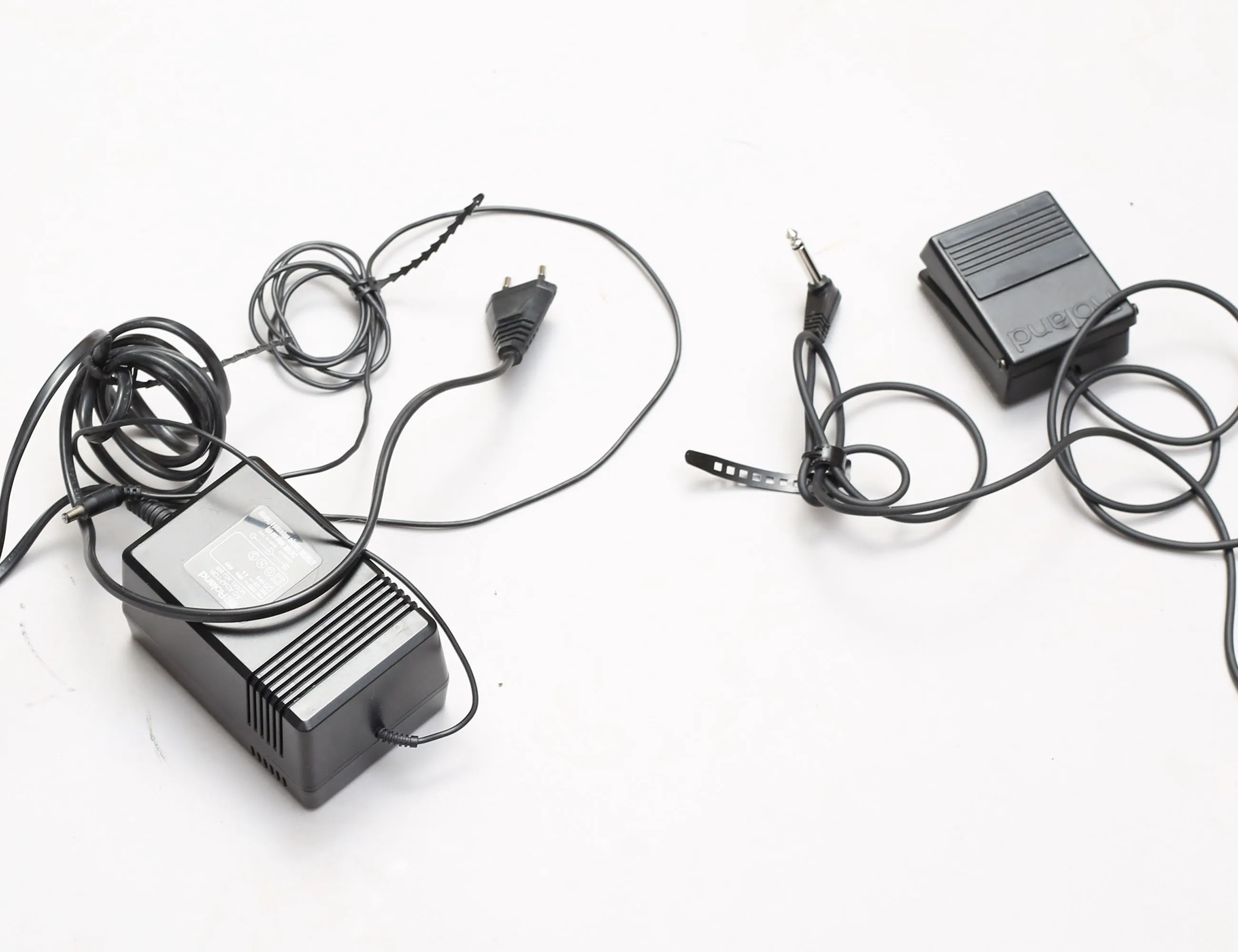 midi in/ut, inbyggda högtalare, uttag för hörlurar, inklusive ställning i svart trä, fot switch, fungerar vid katalogiseringstillfället, höjd 74, bredd 114 (inköpt 1992)