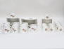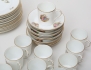 11 kaffekoppar med fat, 12 assietter, 12 espressokoppar med fat, polykrom dekor samt förgylld kant, höjd 5/6,5