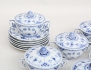 6 buljongkoppar med lock och fat, helblond, 1:a sortering, modellnummer 1228, 1142-1228, 764-1228, höjd 6,5 (ett fat med tillverkningsdefekt, ett med micronagg)
