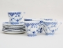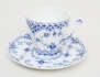 6 kaffekoppar med fat, "Blue Fluted Full Lace", modellnummer 1036, 1:a sortering, höjd 7, diameter 7/14