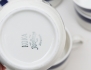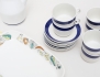 8 tekoppar med fat "Koka Blå", Hertha Bengtsson, höjd 7, diameter 9, kaffekanna "Silja", höjd 24, uppläggningsfat "Granada", 35x22