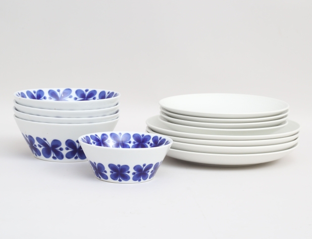 4 tallrikar samt 4 assietter "Blå Eld", Hertha Bengtsson, diameter 23/19, 4+1 skålar "Mon Amie", Marianne Westman, diameter 15/12