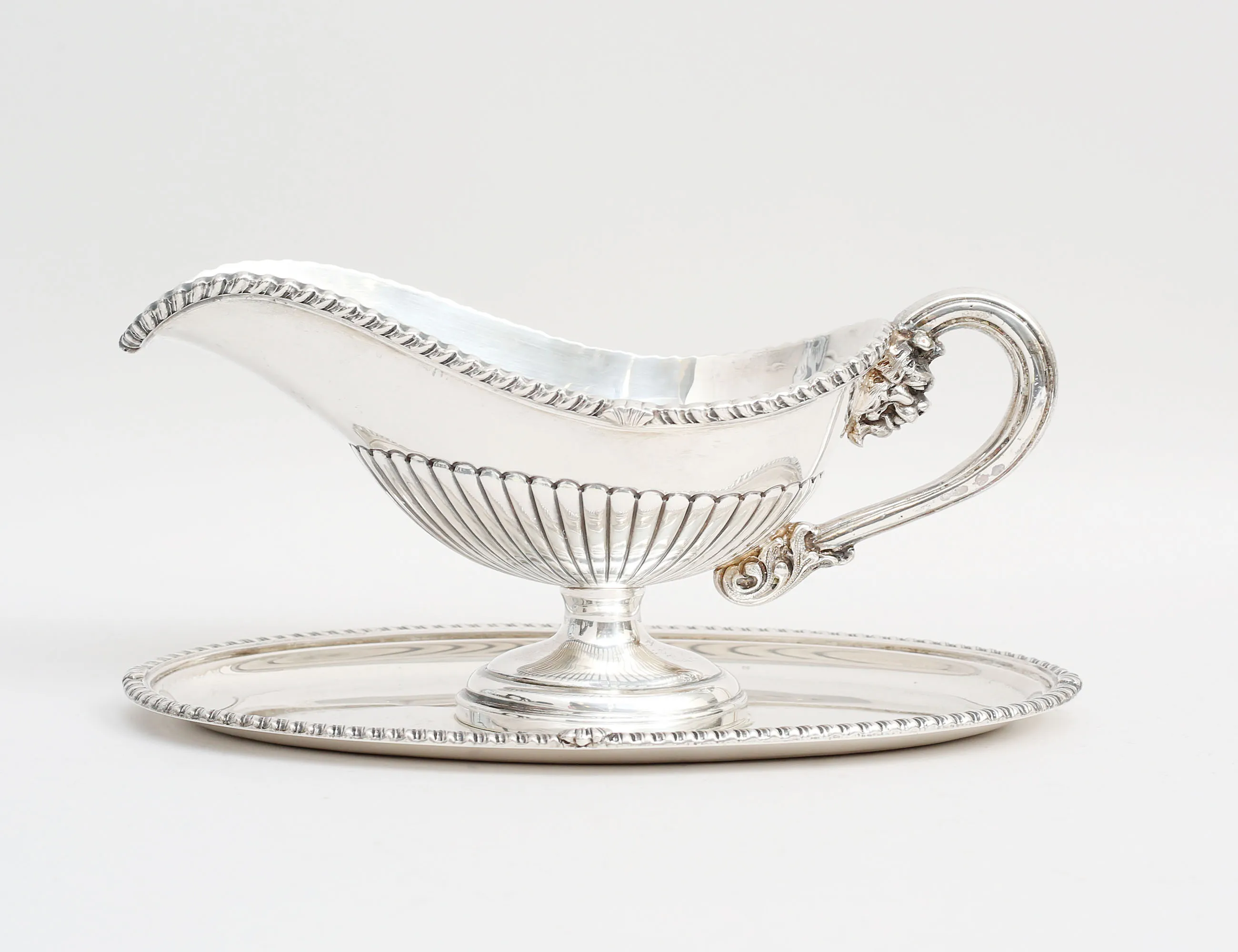 silver 800/1000, vriden kantdekor, hänkelfäste med lejonmaskaroner och akantus, vikt 580 gram, höjd 10, bredd 22x13