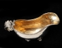 rokokostil, svenska importstämplar, reliefdekor av blommor och pärlstav, tassfötter, invändig förgyllning, kraftig, hamrad,vikt 219 gram, höjd 9,5, bredd 17