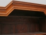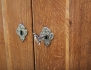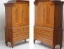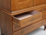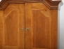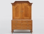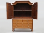 troligen Sydsverige, bonad ek med bandintarsia, överskåpet med ett hyllplan samt skedhylla, två mindre lådor, underdel med fyra lådor, beslag i gjuten mässing, demonterbart i 5 delar, höjd 200, bredd 134, djup 52 (underdelen saknar nyckel)