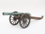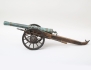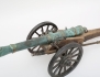 Svensk Metallkonst AB Karlskrona, grönpatinerad brons, lavett i trä med svartlackerade metallhjul, längd 78 (plakett med gåvogravyr på lavetten)