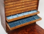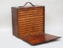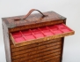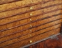 björk och björkrot, beslag i mässing, 12 lådor med benknoppar, senare läderhandtag, höjd 40, bredd 42, djup 19 (6 knoppar saknas)