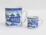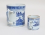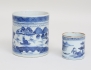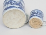 Jiaqing 1796-1820 respektive Qianlong 1736-1795, blåvit underglasyrdekor, sejdel med flätat handtag, höjd 11/6,5 (båda med smärre tillverkningsdefekter) (2)
