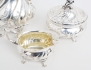 CG Hallberg Stockholm 1950/51, silver, dekor av knäckåsar och rocailler, tassfötter, sockerskål och gräddkanna med invändig förgyllning, vikt 1344 inklusive trähandtag, höjd 26