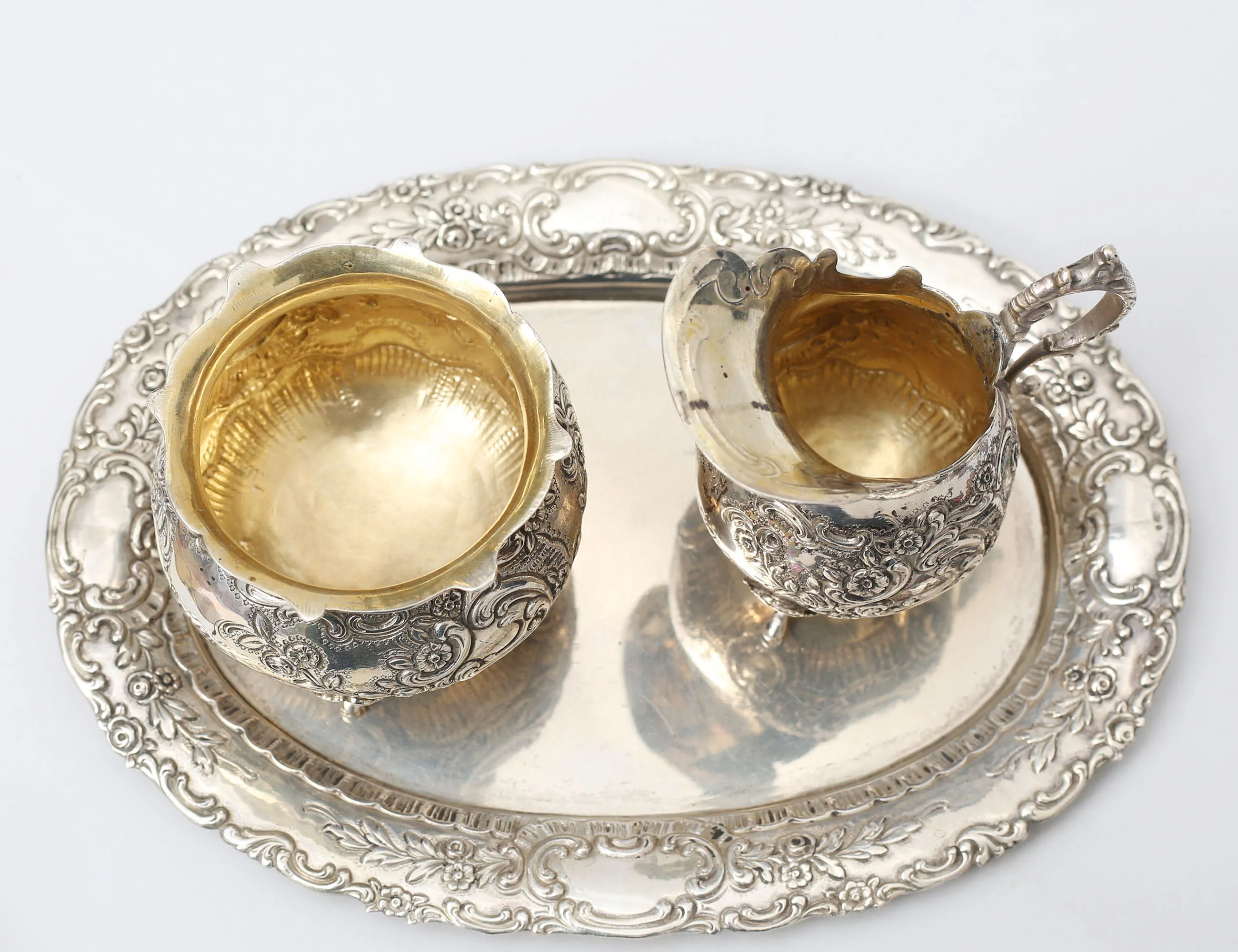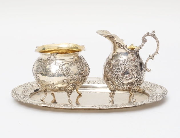 silver 830/1000, svenska importstämplar, reliefdekor av rocailler och blommor, vikt 236 gram, höjd 6/8, bredd 19x14