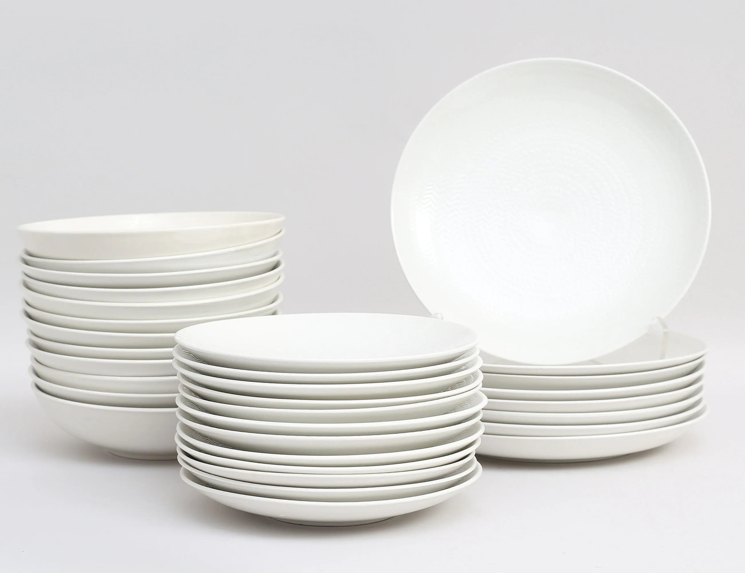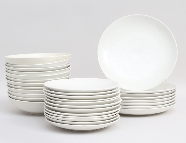Hertha Bengtsson Rörstrand, 8 flata tallrikar, 12 djupa tallrikar samt 12 assietter, diameter 23/19 (2 flata med smärre missfärgning, krackelyrer/bruksslitage, en assiett samt en djup tallrik med micronagg medföljer) (32)