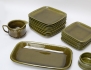 10 mattallrikar, 10 förrättstallrikar, kanna, uppläggningsfat samt skål, Höganäs, grön glasyr, 23x23 (kanna med smärre fotringsnagg)