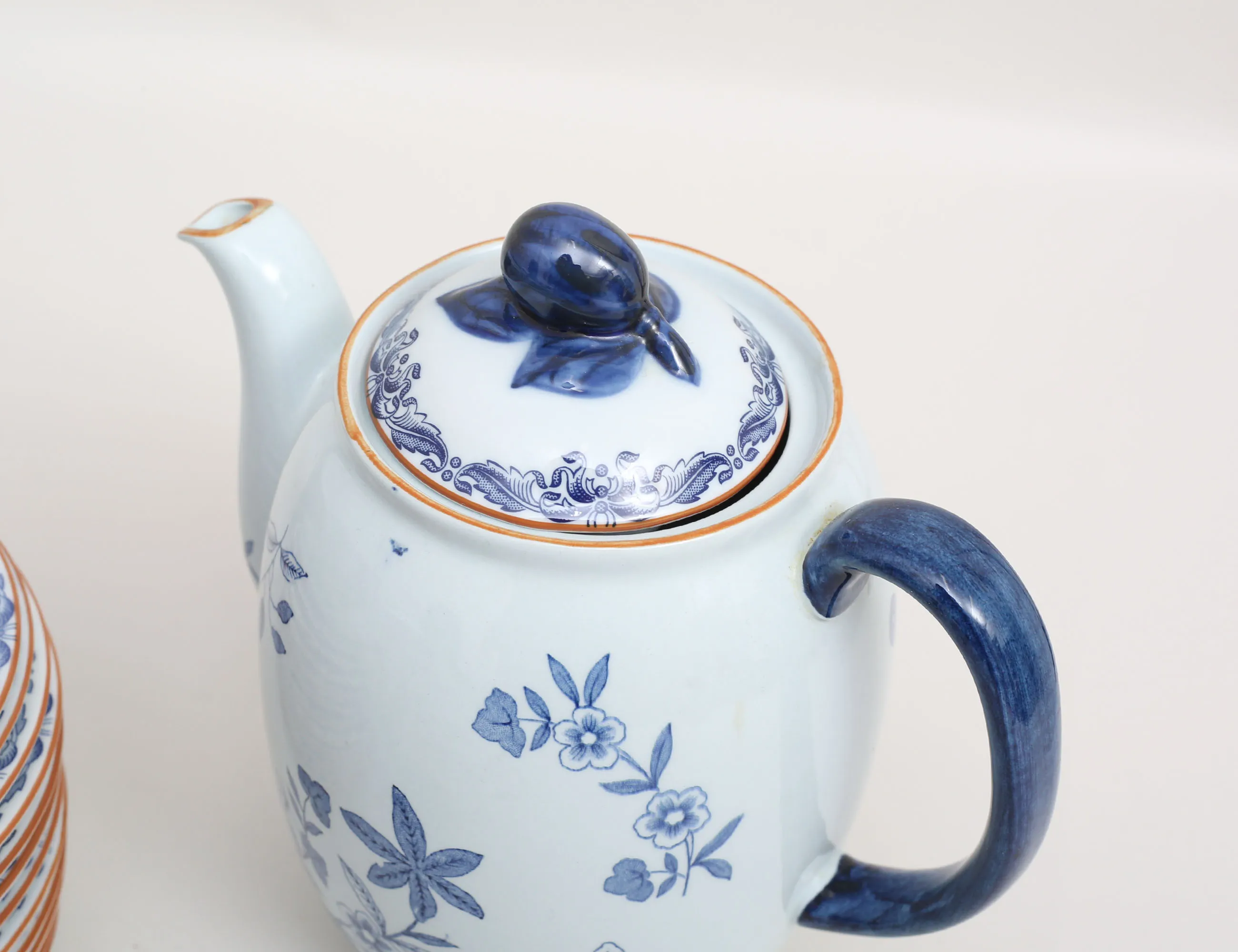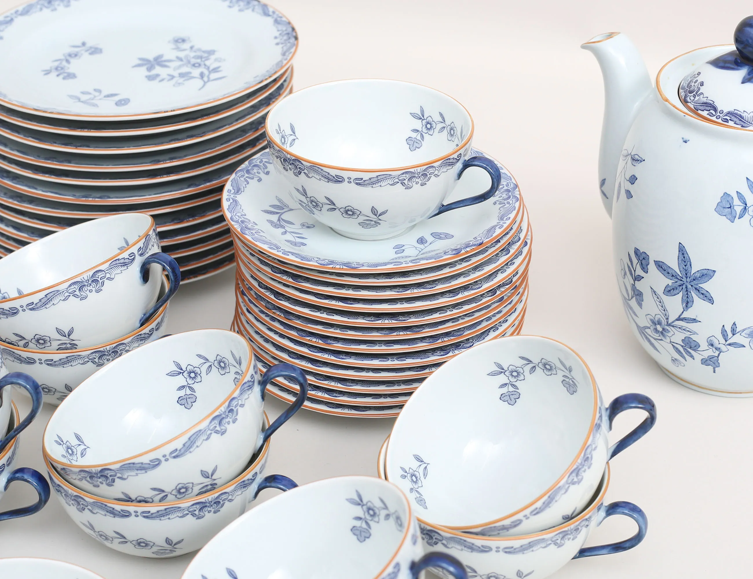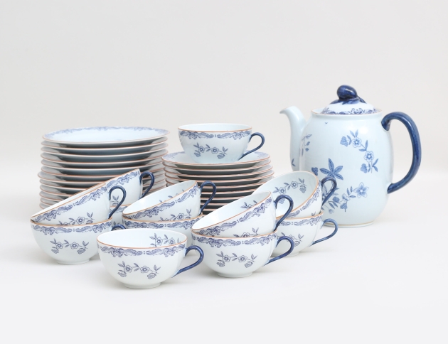 12 kaffekoppar med fat, 12 assietter samt kanna, höjd 5-20 (lock eventuellt ej tillhörande)