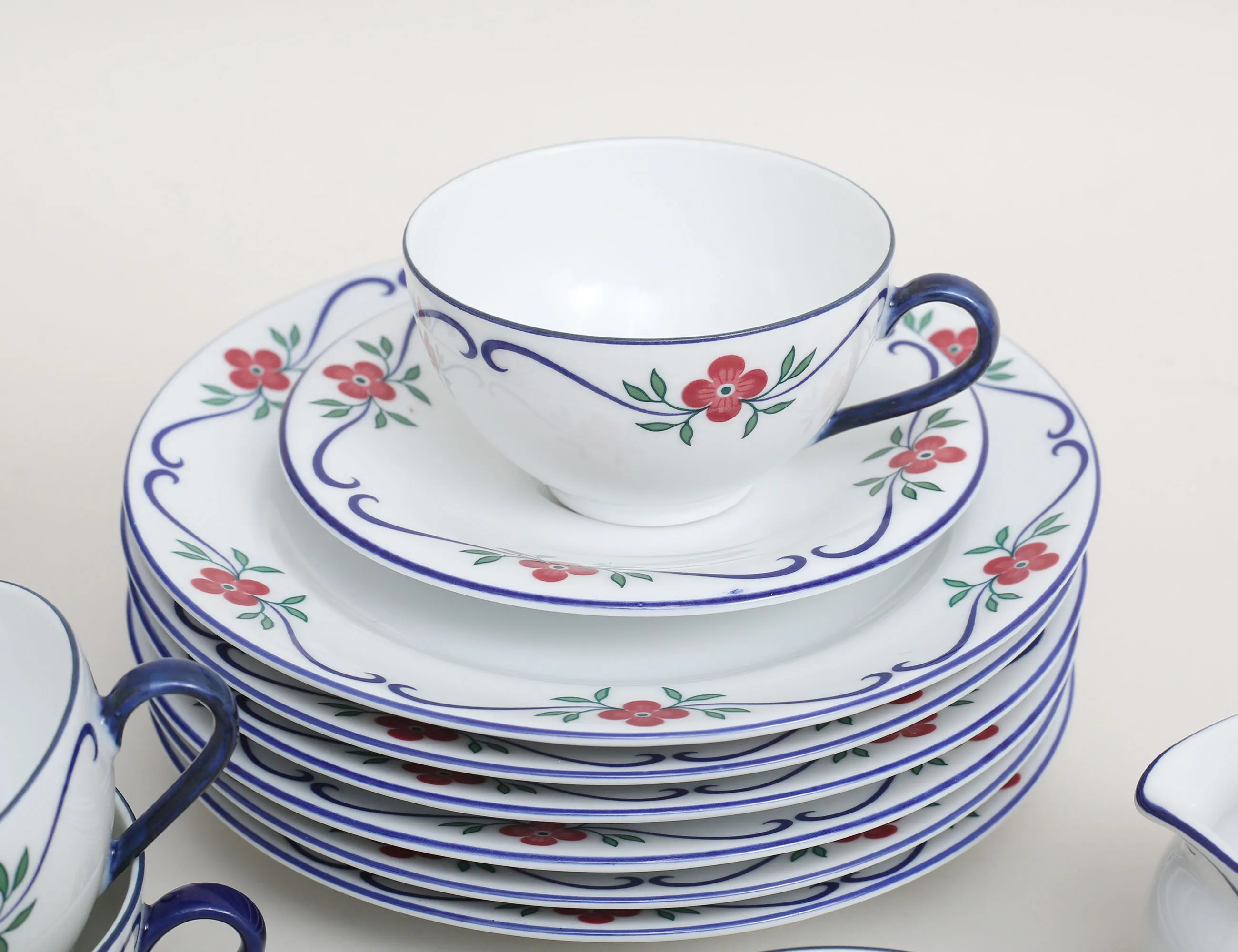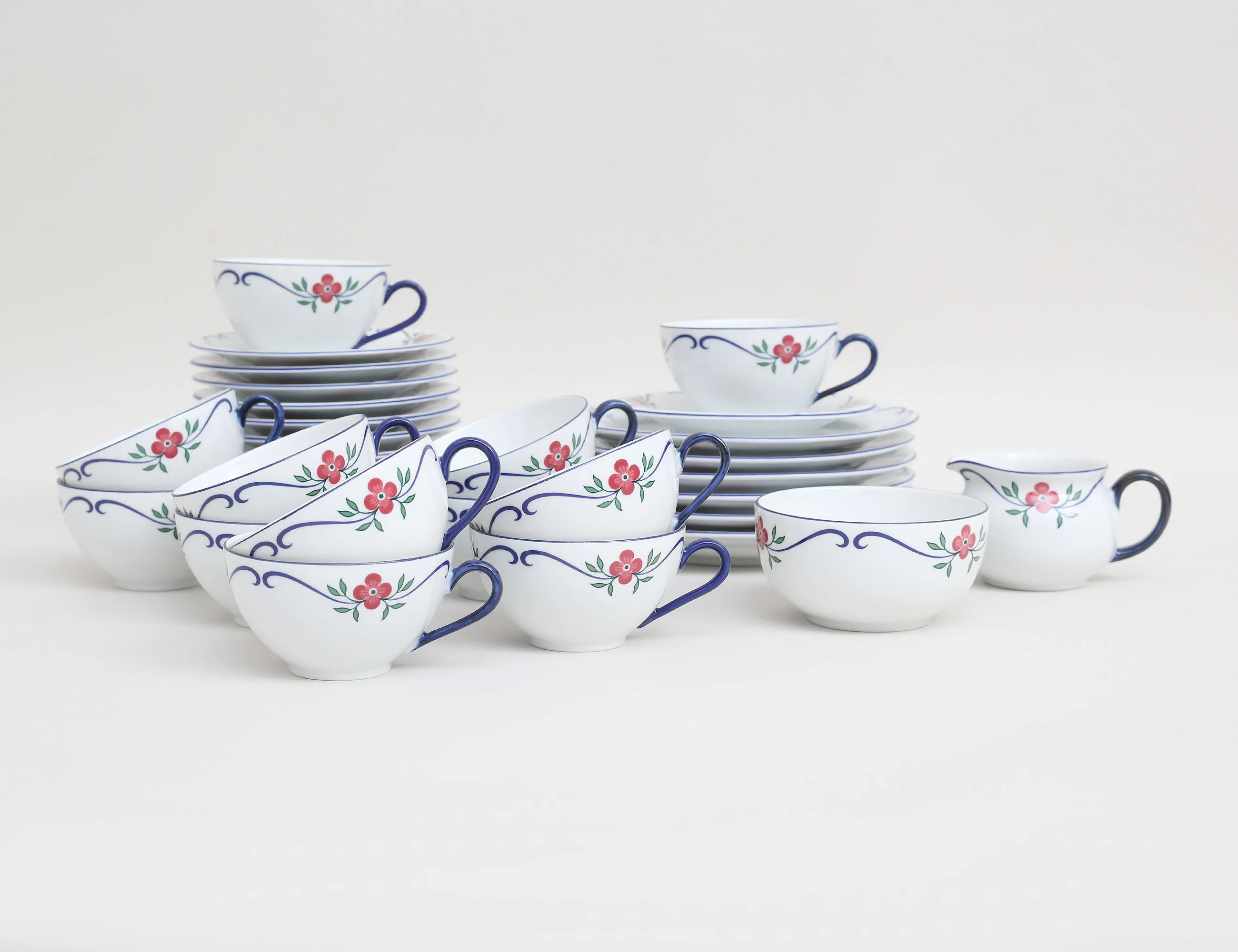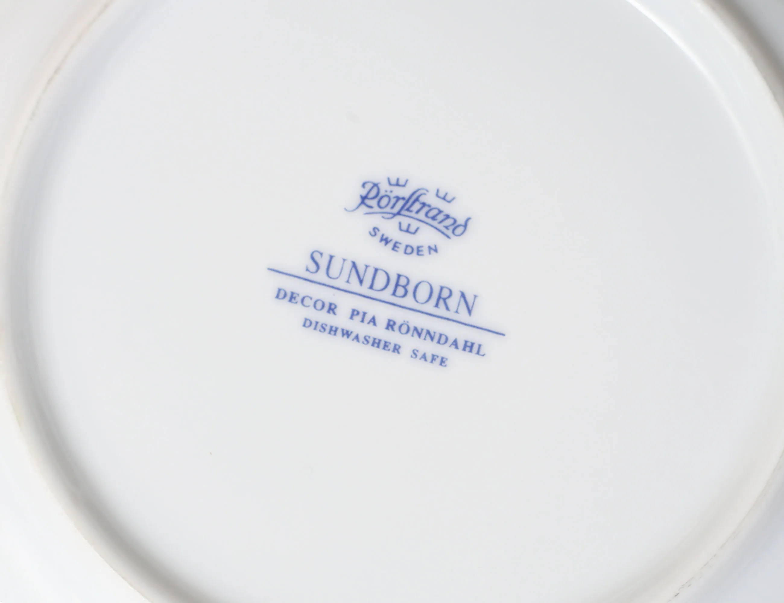 design Pia Rönndahl Rörstrand, 12 kaffekoppar med fat, 6 assietter, sockerskål samt gräddkanna, diameter 9-18 (20)