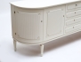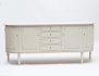 1900-talets andra hälft, bemålat, mittparti med fyra lådor, sidoparti med två dörrblad vardera, räfflad dekor med fleuroner, höjd 80, bredd 185, djup 44