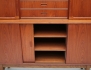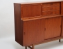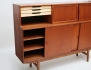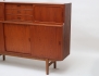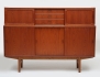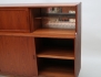 Holland/Belgien (?), oidentifierad formgivare, teak, skjutdörrar, mittparti med lådor upptill, 2+1 hyllplan, ena sidan med barinrede, höjd 127, bredd 176, djup 38/47 (källarlukt inuti)