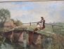 oljemålning på pannå, "Fishing girls", signerad 1895, atergo etikett, 50x72, rammått 75x97 (smärre krackelyrer)