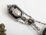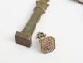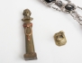 1800-talets första hälft, mässing, höjd 3, sigillstamp c.1900, patinerad brons, föreställande Beethoven, höjd 8, gehäng c.1900, vitmetall, monogram under krona (3)