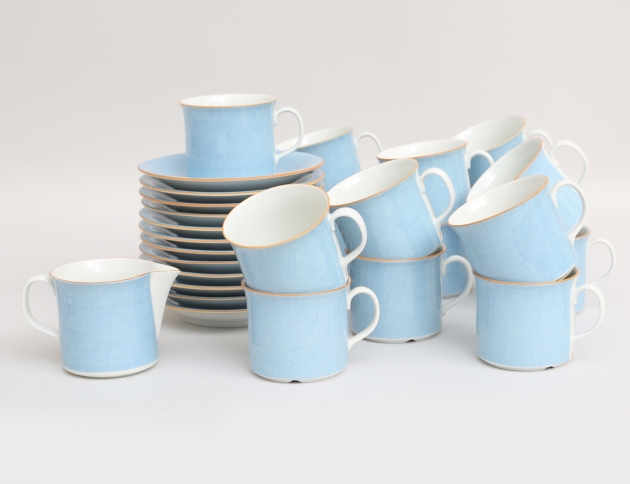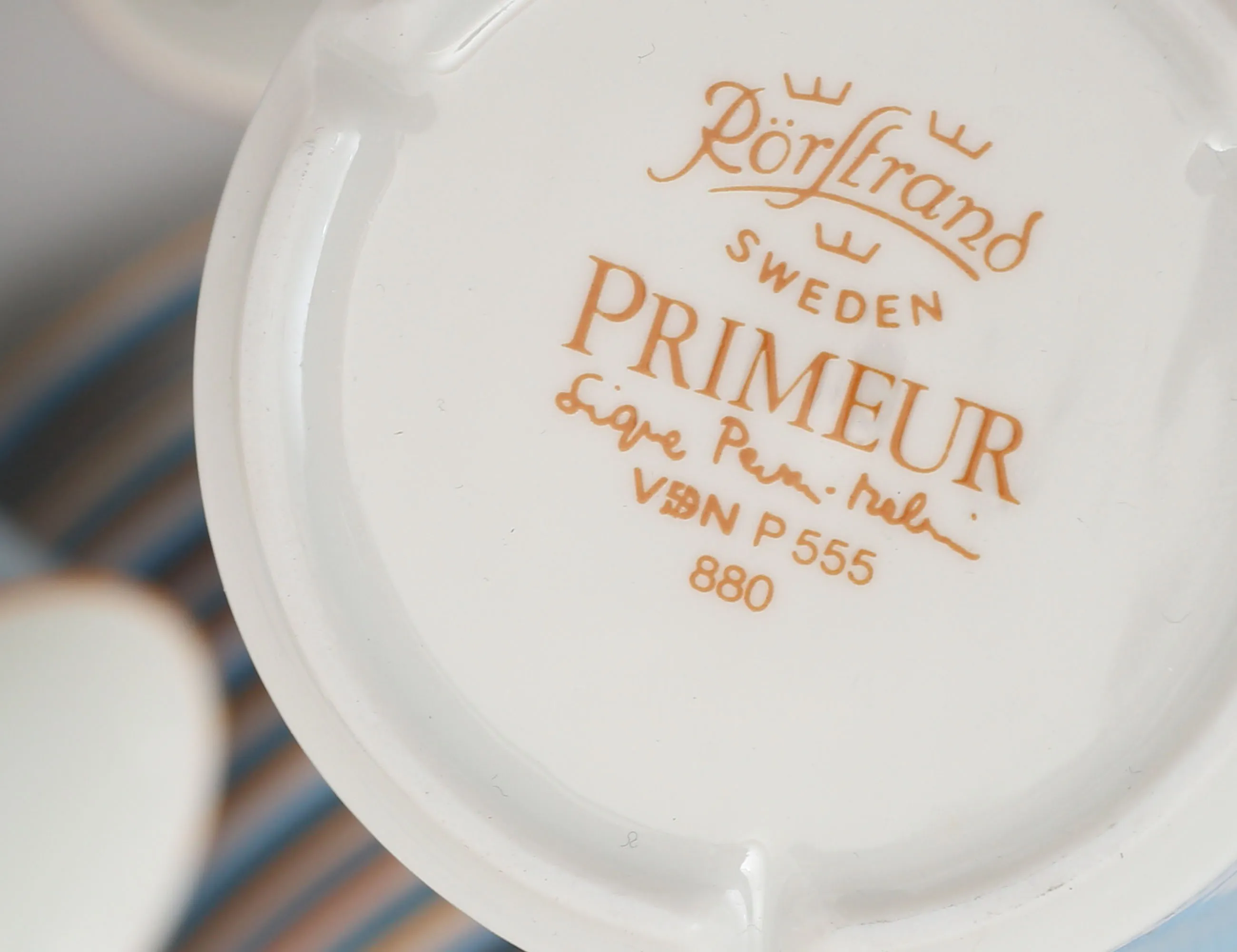 12 kaffekoppar med fat samt gräddkanna "Primeur", 2 extra koppar medföljer, höjd 6,5 (13)