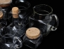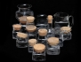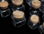 10 glasburkar med korklock, 2 glasburkar, 2 kannor samt flaska med korklock, "Sill i kvadrat" Boda 1970-tal, höjd 8-16 (15)
