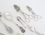 såsslev, 8 kaffeskedar - Norge, 2 kaktänger, 2 gafflar, sked - modell Rosen, längd 17, sockertång, vikt 265 gram