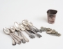12 kaffeskedar Norge, 3 kaffeskedar modell Rosenholm, 6 kaffeskedar modell Haga, 3 teskedar, IGÅ 1824, bägare GAB 1962 (inskription), m.m., vikt 476 gram
