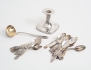 såsslev modell Vasa, 6+7+6+4+2 kaffeskedar, ljusstake signerad T. Eldh Ceson Göteborg 1965, höjd 7,5, fylld botten 292 gram exklusive ljusstake