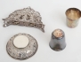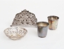 bägare 1 par signerad T. Eldh, Ceson Göteborg 1949, höjd 5, servettställ, skål genombruten, Chester England 1900-tal, vikt 145 gram
