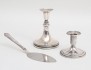 ljusstake Löfman Mema 2004, höjd 13, ljusstake Ceson Göteborg 1971, höjd 7, tårtspade Cohr, längd 22,5, vikt 77 gram exklusive ljusstakar med fyllda bottnar (3)