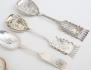 matsked J. Lagerdahl Eksjö 1807, 2 matskedar Finland 1883/1923, 1 par skedar samemodell, Persson Haparanda 1942/1950, 6 kaffeskedar modell Sachsisk, Cohr Danmark, vikt 337 gram