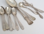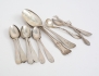 saltsked A. Castman Eksjö 1804, llängd 12,5, 3 teskedar Stockholm 1815, matsked JF Masman Stockholm 1815, matsked G Dahlberg Lund 1815, 3+1+2 teskedar, 2 gafflar, längd 12, vikt 356 gram
