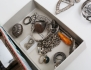 mekaniska ur varav 3 fungerar vid katalogiseringstillfället, halscollier agat respektive tigeröga, orientaliska smycken, bijouterier