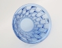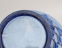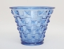 skål blåtonat pressglas, nedåt avsmalnande reliefdekor av fasetter, signerad i relief Orrefors GP14, höjd 16, diameter 19,5 (smärre beläggning nedtill invändigt)