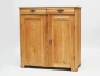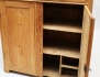 furu, två lådor. dörrpar med bakomliggande hyllplan, höjd 115, bredd 111, djup 48 (senare draghandtag i smide, fläckar)
