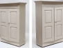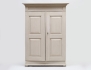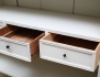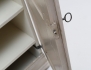 Herrgårdsarbete, bemålat, tre hyllplan varav ett med tre lådor, höjd 166, bredd 122, djup 48 (nyckelbeslag saknas)