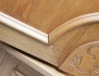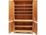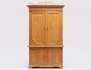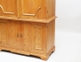 ek, träskuren dekor, genombrutet krön, beslag i mässing, fem hyllplan, 2 delat, höjd 249, bredd 142, djup 60 (en dekorlist saknas, fanerskador)