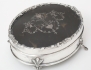 Birmingham England 1913, lock i sköldpadd med silverinläggningar, i form av rosetter, tassfötter, invändigt blå sammet, höjd 6, bredd 14x11,5