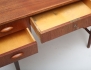 teak, 7 lådor i sargen, kortsidor med uppsvängd kant, etikettmärkt Retrofabrikken Danmark, fristående, höjd 75, bredd 130, djup 67 (ett draghandtag med avslag)