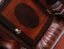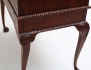 mörkbetsat trä, två lådor i sargen, låduppsats, träskuren dekor, clow and ball fötter, beslag i mässing, höjd 105, bredd 100, djup 60 (smärre bruksslitage, dörr med torkspricka)