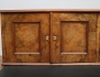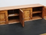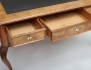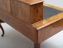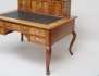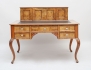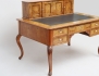valnöt och valnötsrot, skiva med infällt svart skinn, sarg med fem lådor, uppsats med dubbla skåpsdörrar, träskuren dekor, nyckelskyltar i ben, höjd 75/105, bredd 130, djup 90 (uppsats saknar nyckel)