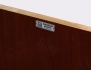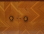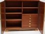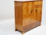 KM Möbler Skövde, alm och rotfaner, runda handtag med svärtad dekor, invändigt fyra hyllplan och fem lådor, brickmärkt, höjd 125, bredd 130, djup 46 (nyckel saknas)