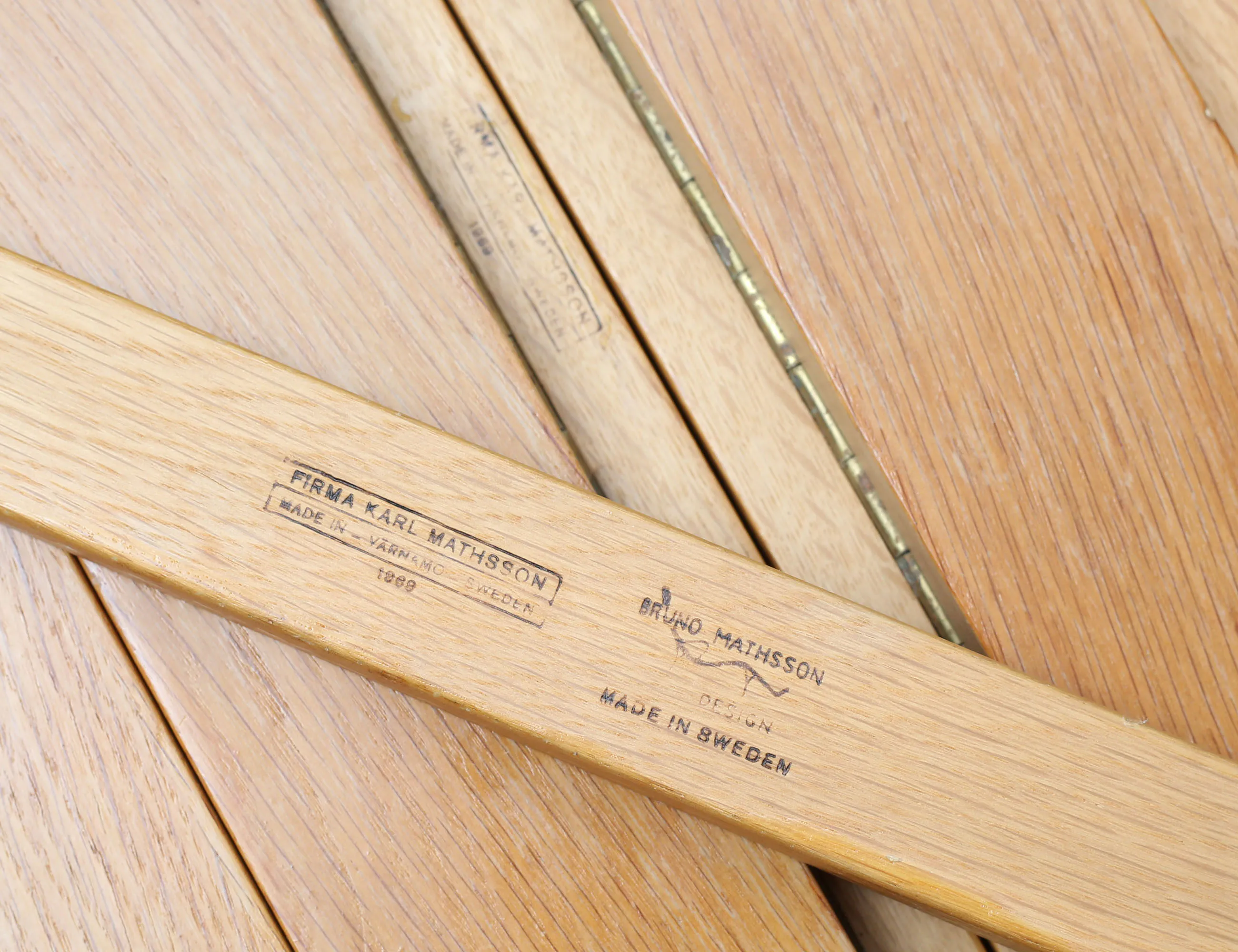 brännstämpel Firma Karl Mathsson Värnamo Sweden 1969, modellen formgiven 1936, ek och bok, höjd 72, bredd 90, längd 151, total längd 279 (4 klaffar á 66cm) (fläckar, bruksslitage)