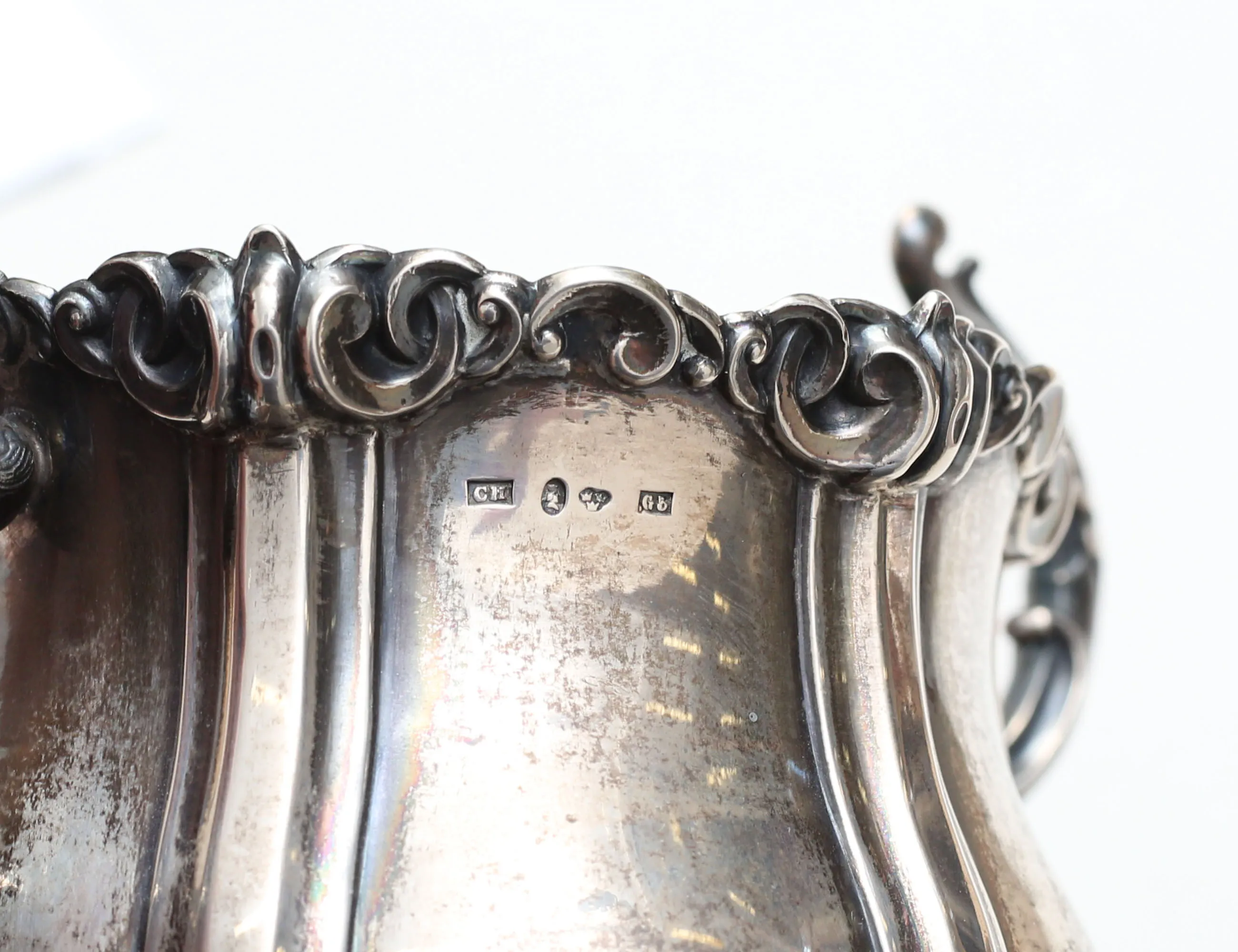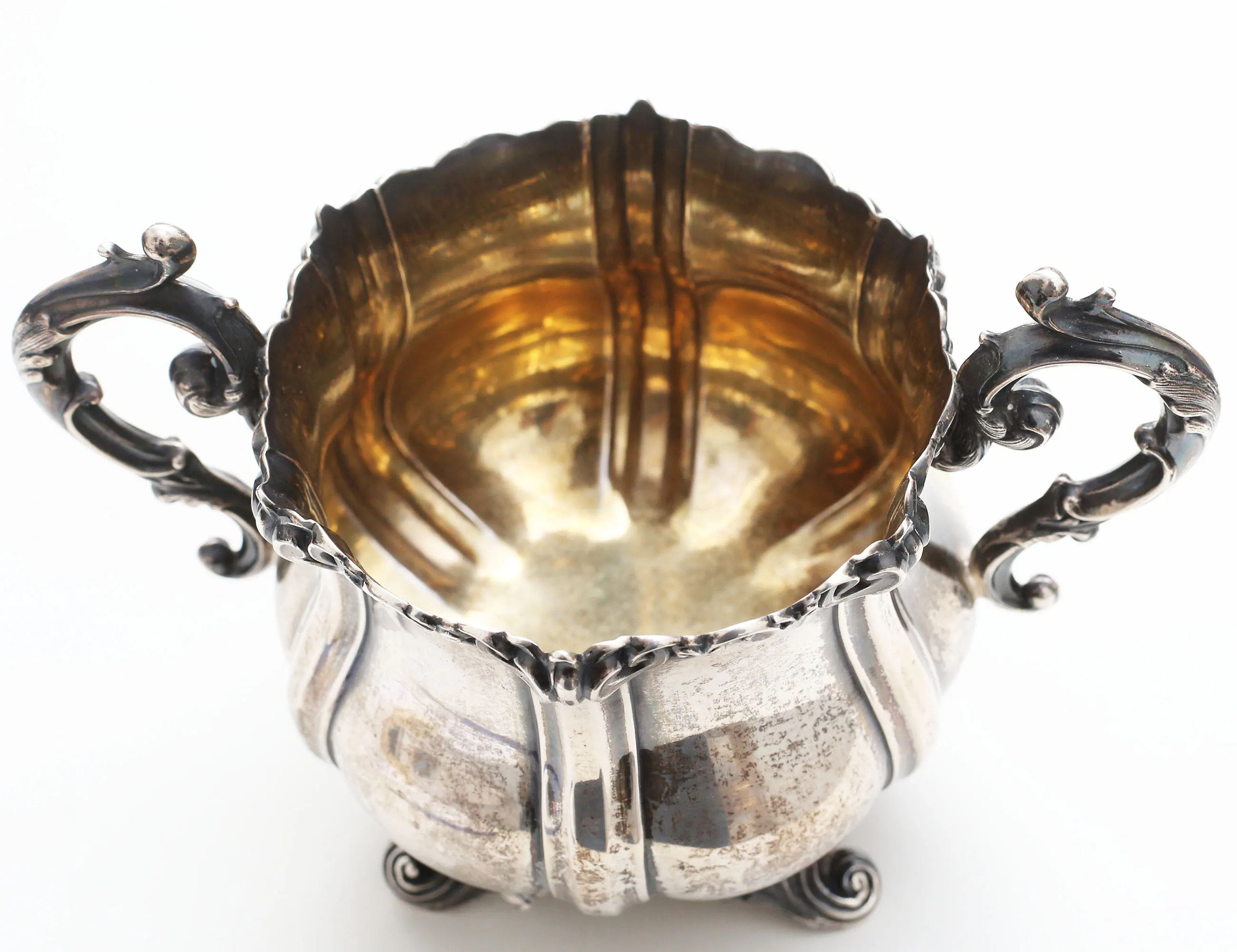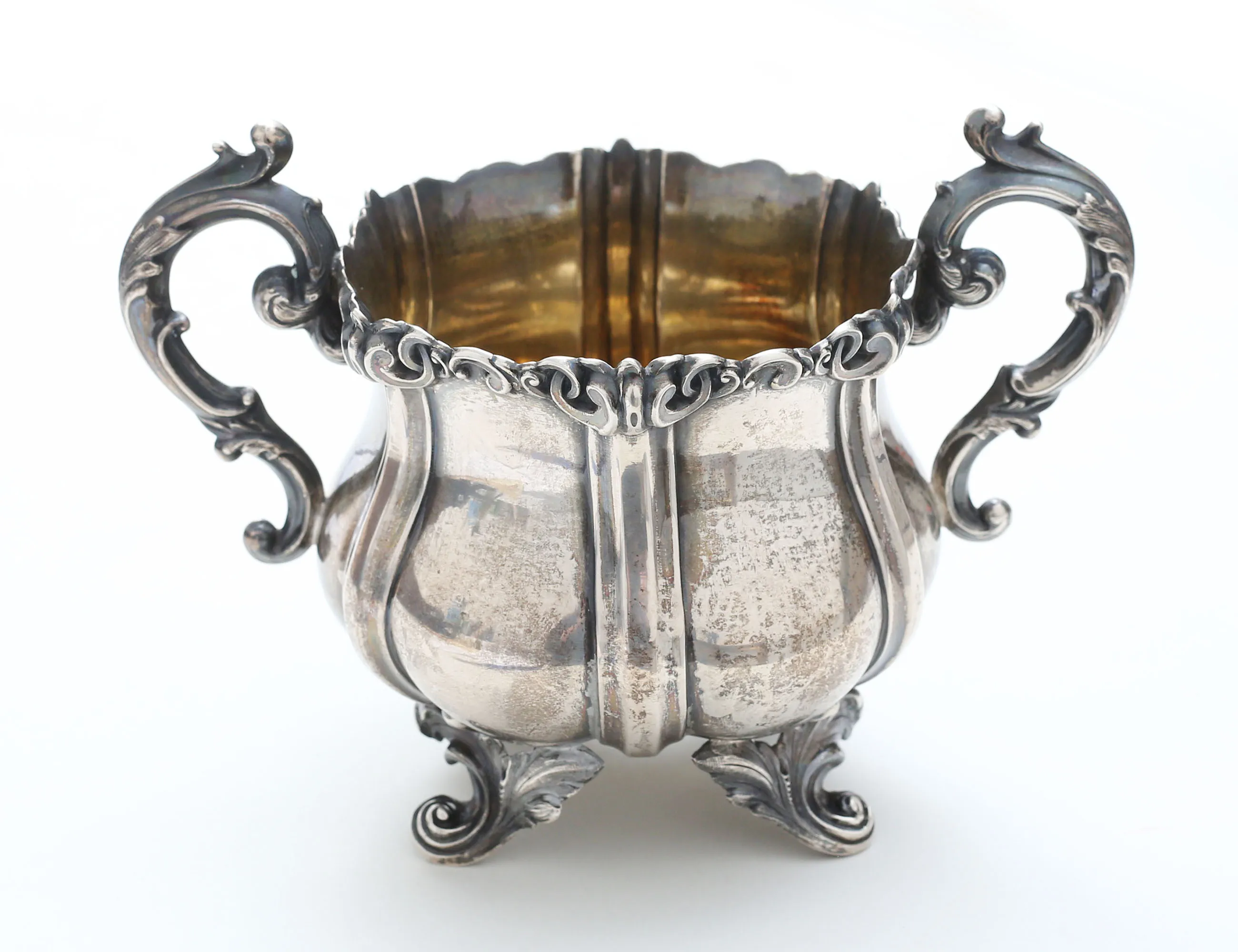 Gustav Möllenborg Stockholm 1861, ornamenterade hänklar, fötter samt utsida mynning, invändigt förgylld, vikt ca. 248 gram
