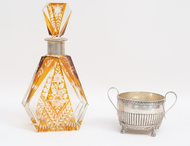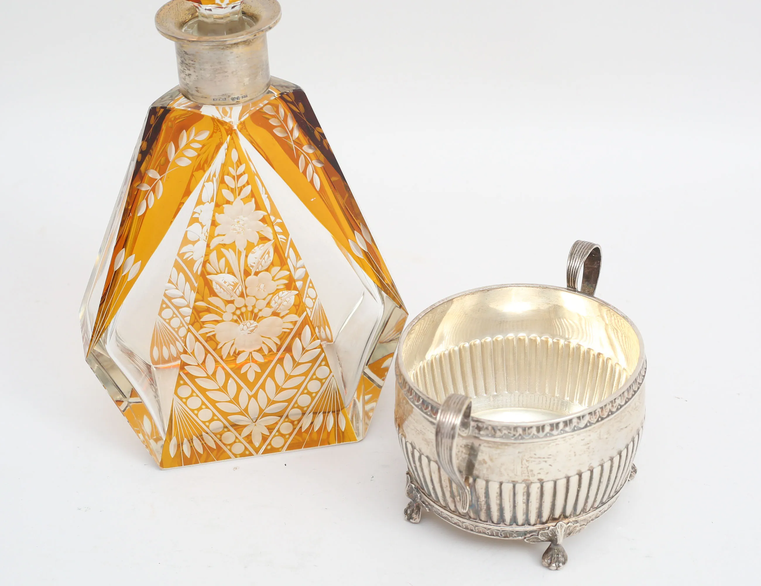GAB Stockholm 1916, höjd 8,5, karaff med propp, silvermontage, kristall Böhmen, höjd 26, vikt 219 gram exklusive karaff (2)