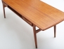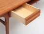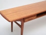 teak, ett hyllplan samt två lådor i sargen, kortsidor med uppsvängd skiva, etikettmärkt Retrofabrikken Danmark, höjd 52, bredd 151x52 (smärre fläckar)