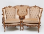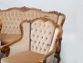 soffa samt 1 par fåtöljer, betsat trä, lösa plymåer, djuphäftad rygg med dekorspik i mässing, klädsel i sammet, höjd 98, bredd 178, djup 59 (3)