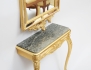 reliefdekor, förgylld med bladguld och slagmetall, uppsvängt genombrutet krön, marmorskiva, höjd 140/65, bredd 52/54 (2)
