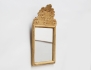 Sverige 1700-talets andra hälft, förgylld, uppsvängt krön med träskuren dekor i form av rocailler och akantus, högklassig rokoko, 45x24 (senare spegelglas och förgyllning)