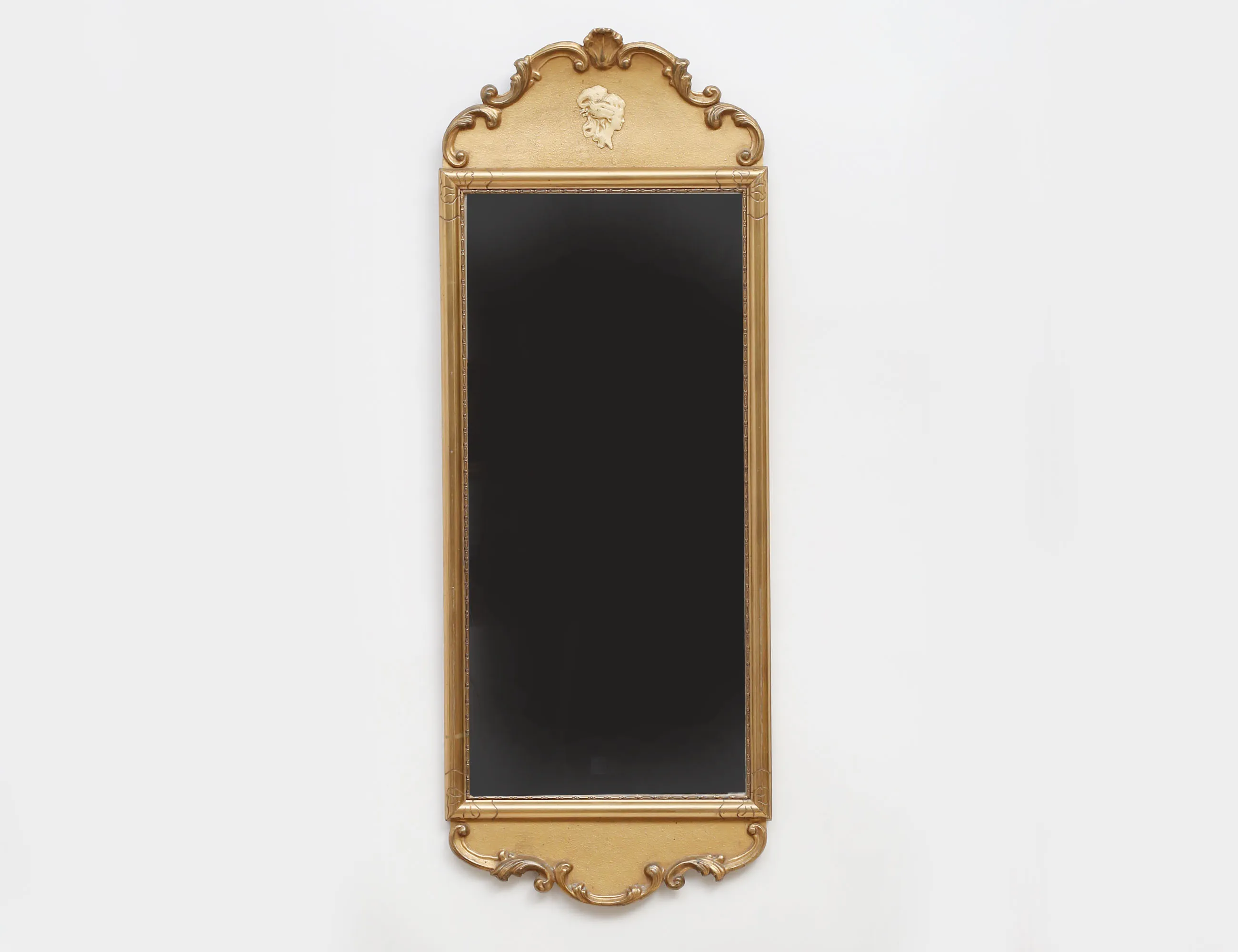 förgylld reliefdekor, krön med kvinnoprofil, fasettslipat glas, etikettmärkt J.A. Edenholm Guldlistfabrik Gustafs., 111x41